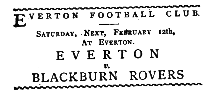 This Afternoon, on the Everton ground, the pet team of the Liverpudlian lovers of football received a visit from the Blackburn Rovers, the holders of the English Cup. This was a return match, the Evertonians visiting the Leamington ground on the 15th ult., when the game ended in a clean slate, neither side scoring, after a somewhat slow game, owing to the terrible state of the ground through the frost and snow. Both clubs are warm favourites with their respective partisans, and the form of each is now first class the Rovers being in the pink of condition, and the Everton club playing excellent football. On Saturday last, it will be remembered their performance against Halliwell was greatly admired though neither side scored. The following were the teams;- Rovers; Arthur; Beverley, and Ward, backs; Heyes, Suter and Forrest, half-backs; Lotfhouse, Walton, Fecitt, Townley, and Sourbutt, forwards. Everton; Joliffe, goal; Dick and Dobson, backs; Higgins, Gibson and Stevenson, half-backs; Fleming, Briscoe, Richards, Farmer, and Costley, forwards. Mr.Hull, Liverpool Ramblers, was the referee. There was a splendid attendance, no less than 7,000 spectators being present, and the weather was glorious, the game commencing in a brilliant sunshine. Dr. Morley and other football celebrities were on the stand. The appearance of the Rovers on the field was greeted with loud applause, Richard for Everton kicked off down the hill at twenty minutes past three, and play was kept in the Rovers’ end for some minutes. The ball then went to the Everton end, but Dick and Dobson were strongly on the defence and Stevenson sent the leather down the field. Fleming showed some fine play on the Everton right, but Richards missed the goal mouth rather clumsily. Again the ball looked dangerous in the Rovers’ quarters, but Beverley saving, Douglas and Heyes were next on the defence, and Fecitt showed some splendid passing. Good play was witnessed from the Rovers’ forwards near the Everton goal, but Dobson saved. Briscoe and Fleming for Everton passed the ball nicely up the field, but Beverley was on the defensive, and prevented danger. Applause greeted the efforts of Fleming, and corner was conceded but the Rovers backs were again on the defensive. Am determined and splendid attack was made by the Everton forwards on the Rovers’ goal, but Ward faded out in fine style. Again the fine play of the Everton forwards came in for loud applause, and after a combined effort Costley leashed it through the Rovers’ goal amid loud and continued cheers from the assembled thousands. First blood for the home team increased the efforts of both teams, and a grand game was witnessed. After a brief visit to the home goal, the ball again came to its favourite quarters, Fleming with a brilliant run dribbling the ball close to the Rovers’ quarters, but tripping at the last moment the ball passed harmlessly outside. Again the ball was kept in the Rovers half, and a corner was conceded by Beverley, but it came to nothing. Arthur was kept busy with his hands amidst applause from the spectators, and what ought to have been a goal took place, Arthur tipping the ball on the other side. From a foul close in front of the Everton goal, Dobson saved well/ for some minutes the Rovers kept in the Everton half, but all the efforts of the Rovers were futile against the fine work of Dobson and Dick. The leather was now run down to the other end, and Richard kicked amongst the crowd. Arthur again use his hands. Lofthouse passed the ball to Sourbutts, and that player shot into Joliffee’s hands. Sourbutts now showed off well with some good dribbling, but he was stopped by Gibson. Another corner fell to Everton, but it came to nothing. For some seconds the game was freely contested in front of the Everton goalmouth, but George Dobson was grandly on the defensive. Half-time was called with the game one to nil in favour of Everton. In the second half play commenced in the Everton quarters, but quickly returning, some good play was witnessed near the Rovers goalmouth, but the defence was good. Fleming made a good run up and shot, Arthur just saving. A grand and determined attempt was made on the Rovers goal, which deserved to score, but was unsuccessful. Fleming repeatedly distinguished himself, and Costley shot over the bar. Final Result. Everton 1, Rovers 1.