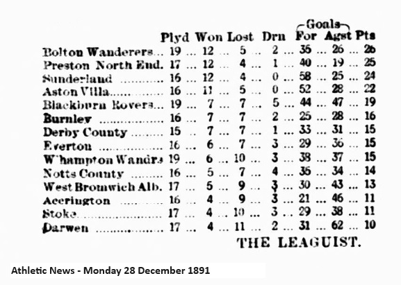 It is generally the outcry of all football committee at the commencement of the winter season that they intend, during the months allotted for the game, to in every way improve on previous form- more especially with the “pros” -and one of the chief clubs who indulged in this bombast was Everton. Why a month or two ago one would have thought (at least by their secretary, who is undoubtedly a most energetic one) that they would pass through all manner of obstacles, and easily take the name of “champions” in both the League and Cup competitions. But their present form, what is it? What have they done? Why simply broken faith with admirers of the game. Darwen proved themselves superior to the Evertonians, and on Saturday week they again met with such a defeat -5-1- as will long be remembered. Considering the number of imported men they have secured from time to time from various parts of the kingdom (including the Scotch amateurs?) one could hardly have expected such wretched form. I hope that they will improve and yet show themselves to better advantage.
