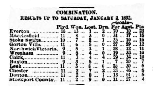 Played on Friday at Gorton, before 2,000 spectators. Everton pressed during the first half, and scored three points to their opponents nil. The second half was more stubbornly contested, each team scoring twice. Result; Everton 5; Gorton Villa 0