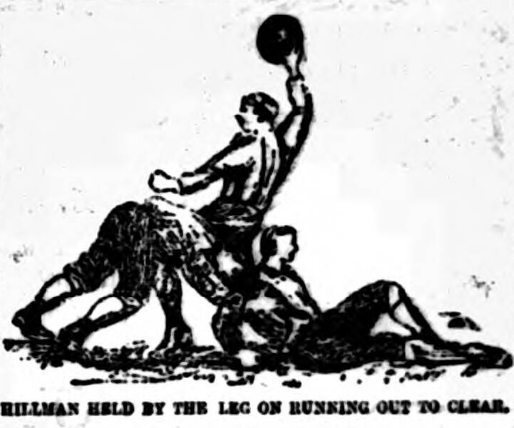 That Hill, who played in centre, was a treat, his dodging and shooting being up to the mark, while his judicious passes were on the finest order.