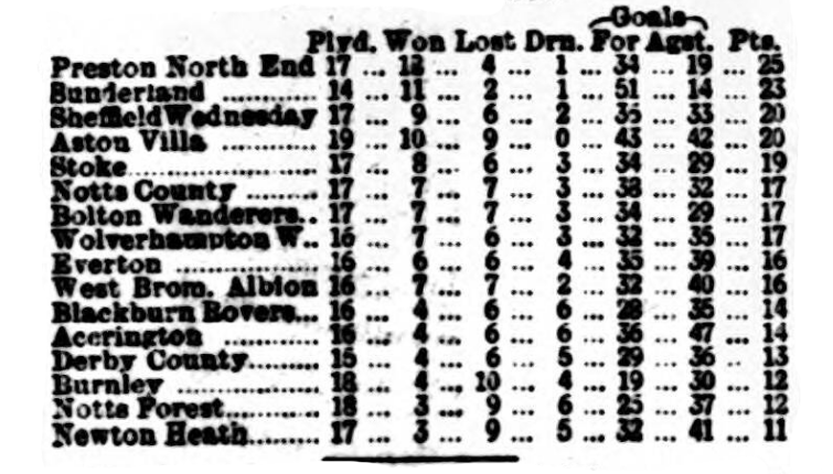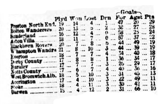 More than ordinary interest centred in this League match at Liverpool, on account of these clubs having to meet on the same ground two weeks hence in the first round of the English Cup competition. About 8,000 people were present, the showery weather affecting the attendance. Teams;-