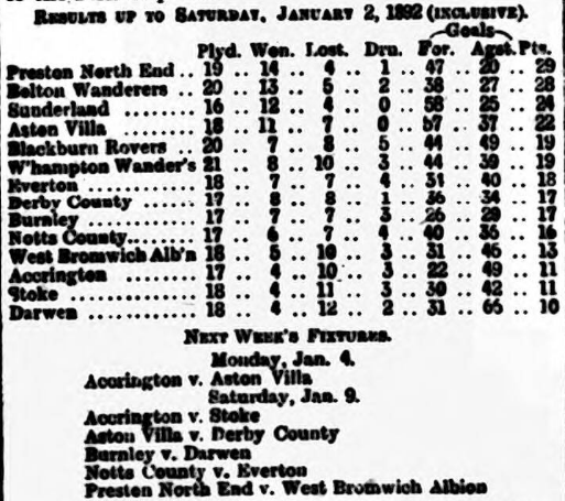 That Everton came out surprisingly strong in their return League match at Perry Barr on Monday in defeating Aston Villa by four goals to three; that this success has tempered the keeners of disappointment expressed in Liverpool over the catastrophes of Christmas Day; that it was a significant victory, for Aston Villa had won all their home matches previously this season save that with the Bolton Wanderers, which was lost only by two goals to one.