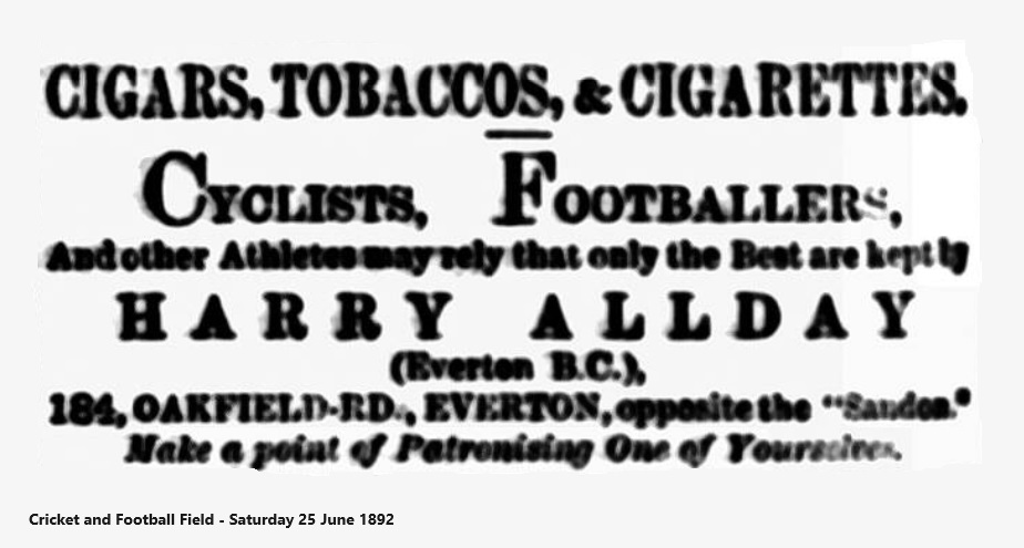 Evidently all is not well with Everton, if the following, which I take from Field Sports, is to be relied upon;- "The difficulties between the Everton club and their players still continue. The latest trouble is with Fred Geary, who was brought before the committee the other evening, and requested to give up the management of the public-house that he now holds, on the ground that such occupation was prejudicial to his future play. Geary point blank refused to do anything of the kind. He stated that when he signed an understanding was come to that he should have a position in Mr. Houlding's employ. For some time he served in a junior capacity, and when a vacancy occurred he was given the management of his present house, and on the strength of the promise made he had got married, and was very comfortable...The committee, finding Geary immovable asked him if he would take employment in another public-house. This Geary also refused...He added that if the committee were agreeable he was quite prepared to sever his connection with the club, and take his papers back and put an end to the present trouble. Serious complications still exist with regard to Holt and Chadwick, who openly assert their determination not to wear the Everton jersey next season. The question whether they are bound by their original agreements will be settled by the English Association at its next meeting." It is easily seen that these complications have their root in the rupture which has taken place at Anfield. I should not imagine that the assistance of unwilling service would be of much benefit to Everton.