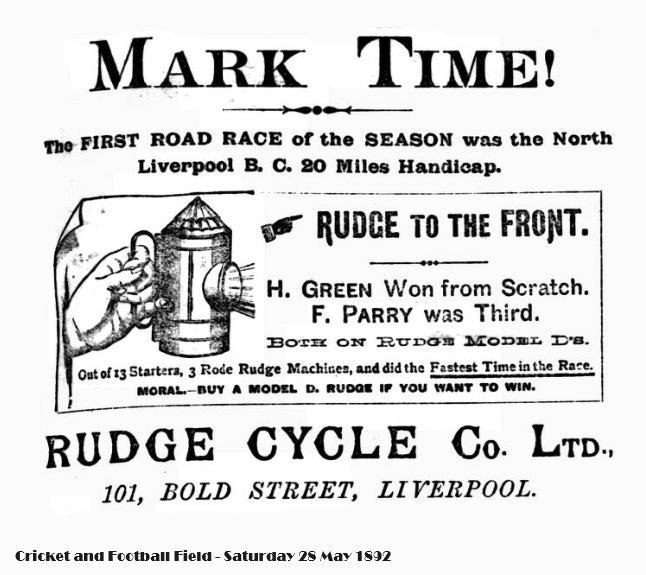 Note – W.R. Clayton 4, Bixteth Street, Liverpool. Cycling - Saturday 28 May 1892