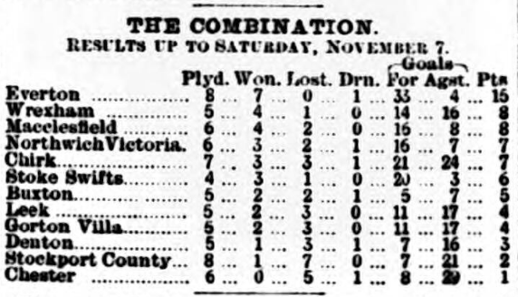 The Everton league team pay their annual visit to Wolverhampton this afternoon, where it will be remembered they defeated the Wanderers last season by a goal to nil. How will Everton shape today? Is the somewhat anxious interrogation. The “Wolves” have been less successful than Everton, and have won but three matches out o 13. These were against Stoke City, Accrington and Notts County –the last two at home –and so Everton have not such powerful men to face as those of previous years at the Molieueax Grounds. The game is sure to be a vigorous one, however, for Wolverhampton Wanderers were always ready for muscular play, and their ill-luck hitherto will cause them to “grid up their lines,” for a special effort to make a forward move. Everton, too, are impressed with the necessary of putting their best foot forward, and with the team –as will be seen below –that has been chosen, a vast improvement on the display seen recently at Preston, Anfield and Darwen, will be confidently expected. At Anfield Everton combination team will of course, be in possession, and will be visited by Wrexham, who are high up in the combination table.