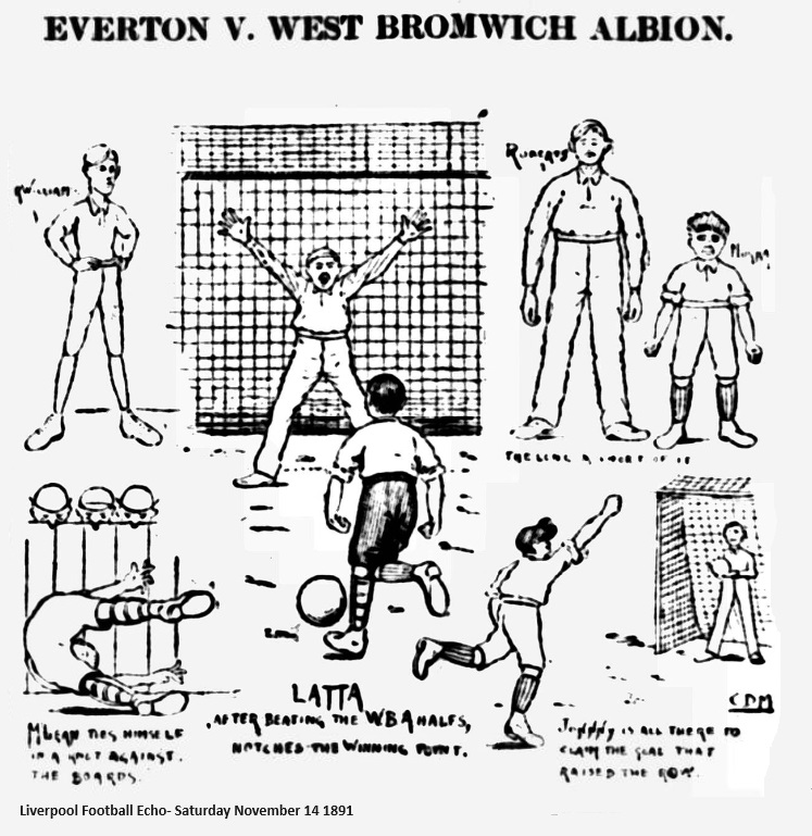 Liverpool Associationists will welcome Everton League home again this afternoon, they having been away during the last three Saturdays –first to be beaten by the Bolton Wanderers, then to score a success over Derby County, and last week to go down heavily before Preston North End. The visitors to Anfield road today are West Bromwich Albion, who have already this season defeated Everton by four goals to nil, and who last year effected a surprise at Liverpool by beating Everton with the score of 3 goal to 2 on October 25-the first League reverse Everton experienced last season. After the failure at Deepdale the Everton executive had harked back, and chosen the identical team which overthrew Derby County a fortnight ago, and their policy will be generally approved.