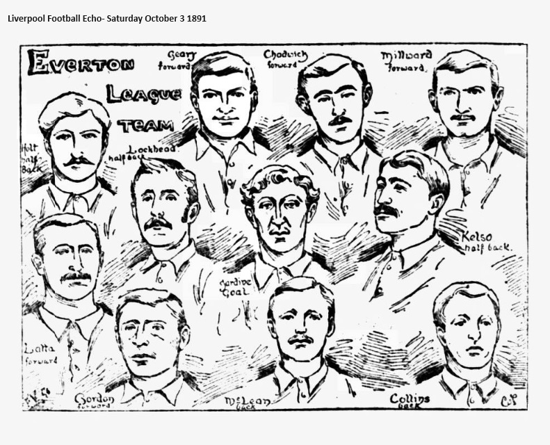 Everton League.- Jardine, goal; McLean and Campbell, backs; R. Kelso, Holt (Captain), and Lochhead, half-backs; Wyllie, Gordon, Geary, McMillian, and Milward, forwards.
