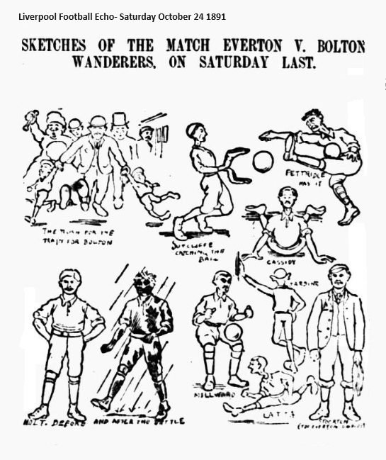 That Everton stuck oil on Saturday last at the Derby County ground; that they had but a mixed team, the atoms blending so harmoniously that Everton won by three goals to nil; that this was Derby’s first defeat at home this season, and It was the only occasion on which Everton have visited and beaten the Peakites pointless ; that the achievement came as agreeable surprise to Liverpudlians. That primarily the experiment of trying Latta centre forward was the great cause of Everton’s success ; that his pluck, skill, and energy stimulated the whole of his colleagues : that the wings appreciated his power, and were leas selfish than of late ; that the attack was thus very keen, the masterly movement of the forwards repeatedly rousing applause from the Midlanders. That the meeting of Everton and Preston North End is causing more stir than any previous one, especially after last Saturday's results of North End and Everton, defeating Blackburn Hovers and Derby County respectively; that Jardine, vice Williams, is the only change made by Everton from last week's team. That Everton have at length got some new men. The long-deferred appearance of Maxwell, of Cambuslang-cum-Third Lanark, taking place on Monday; that the actual number of importations was a couple, Maxwell and Pennell. the latter hailing from Blantyre; that Foyers, of Edinburgh St. Bernards, and Kent, of Long Rangers, have jibbed, and are not likely to be available; that Maxwell worked well for a first appearance ; that Pennell has his spurs to win.