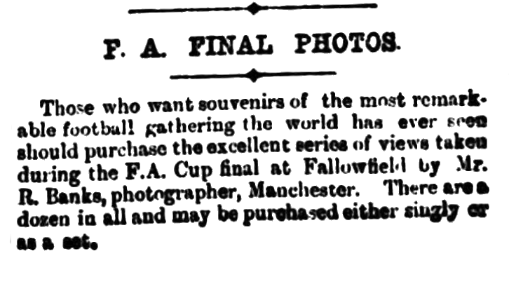I think I shall always have a vivid recollection of last Saturday’s final. Whether Mr. Olympian reviews it from the editorial chair in the same light I don’t know, but on the whole, and though when looking up the economy of my habiliments I find a few corners rounded off here and there and a little foreign blood and hair embroidery sticking on in several places, I rather enjoyed the afternoon. It has been my pleasure in past seasons, when rubbing shoulders with one or another of the Lancashire clubs who have fought for and won the cup, to see the big struggle at the finish, but the present has been the first happy experience of seeing one particular eleven right through from the starting post. What an eventful day to be sure. For choice the little trip on Friday to the “National” took second place easily. “The Little Wanderers” could complain of nothing wanting in the way of a sendoff. It did one’s heart good to see the have shows right away along the line as far as the confines of Shropshire, and then when the battle had been won and the Cup brought back, what a howling reception! My eye! I had never seen the strength of a Black Country reception before. The scene when the Olympic first brought the dearest trophy of all into Lancashire was not in it. Of course, you’ll expect a few lines from this side on the big game itself, though I’m going to be modest, and leave the bulk of it in hands of those whose misfortune it is to explain away the Everton defeat. Needs of praise in honour of the Wanderers victory will not be of such very remarkable interest to you Northerners. It was more by luck than good management –and especially police and official management – that I managed to get a sight of the game at all. The crowd must have lit their pipes with the remains of the press stand when I had got to the end of that “eight minutes’ walk” for Levenshulme (aged! Those Athletic people can hoof it) and already the police having facing about to repulse a flying discharge of clods. These smart, intelligent blue-coated glue-pots never did move till they were hit. They seemed to have come for their own especial pleasure and a good view of the match. If you asked ‘em anything they “knew nuffink” and their superior “hossifers” were invested with the same order though a correspondedly higher equality of stupidity. No thanks to them that I managed at last to work the oracle and got something on the wires for the benefit of those who had paid their bobs, and crowns, too- to see the match –false delusion, and those who wisely kept their railway fares in their pockets and stayed at home. Up to half-time, you know, I thought Everton had the match in hand, but their collapse was as complete as it was sudden. I never saw a team so thoroughly broken up through a single goal, and it strikes me –I have not their cup records by me- that they are not such game cup fighters as I have been led to imagine they were. They “went” like a drum with the sides stove in, and the transition from the confidence of the first half to the chap fallen surrounding a quarter of hour after the interval was most extraordinary. Make it out as you may, that the best team lost I can’t for one moment go with you. When I was a young and over-enthusiastic football reporter- I invariably said that my pet team went down, and if there was the least occasion for the remark. Everton’s football may have been the prettier fashioned of the two styles –I grant you that freely- but at the wear and tear business they were surely second best. Hard fighting found the conquerors. The halves had orders to bang on to the enemy and weary them. They hung on, the tip came off, and once ahead with a lucky sort of goal, for two out of every three goalkeepers would have saved the point, the rest was comparatively easy for them; the defence became almost doubly sure then. Yes, the Wanderers went home to Wolverhampton with their laurels well won, to be hereafter well worn. In a by no means ignoble stifle they conquered, and the victory is a proud thing to boast of. And yet, I never saw a more unpretending lot of fellows. They were jolly- how could they miss being under the circumstances, but of ostentatious show there wasn’t the slightest, and that they were far from overcome in such as generally follows in the wake of an English Cup victory is shown by the fact that on the Monday they turned up on their native heath and did their supporters another good turn by thrashing the Albion in the Birmingham Cup tie. There are no better pleased people at the success of the Wolves than the neighboring Thistles. The Major of West Bromwich, at the complimentary dinner given to the Albion on Monday night hoped the cup might stop in Wolverhampton until it once more returned to his sideboard! All very nice for Lancashire’s considerations, ah! Well you know you must admit that the Palatinate is fairly beaten this time. It had the worst of luck last season, but if ever you folks had a rich chance it was this time, and you see you wouldn’t have it. Have you ever reckoned up the commercial value of that goal which Harry Wood got in the last 30 seconds at Pike Lane? Just tot it up, my worthy Trotters and think what you’ve lost. But anyhow the English Cup has come the English and gentlemen with any sentiment of national pride will, I’m sure extend their congratulations this way. Procession on Monday was a fine thing. Unfortunately there was no balcony on the Town Hall, so that the Cup winners were deprived of the happiness of smiling at the assembled ineptitudes for a few minutes. But they were squat like animated mummies on the stage of the Theatre Royal on Thursday night between the acts, and the histrionic section got plenty for their money. Offers have come from Queen’s Park and other big pots on the other side of the Tweed, but whether the blessed Cup will be hawked up their or not I can’t say. Nor am I as yet in 