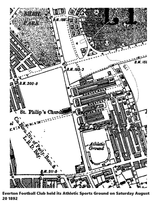 Mr. Bentley and Mr. Earlam having briefly replied on behalf of the League and Combination respectively. Lord Kinnaird proposed the toast of “Success to Everton”. He did not want to make any invidious distinction, but he believed football to be good as a game as any, cricket not excepted. He was glad to hear Dr. Morley say that they had determined to maintain a sportsmanlike feeling in the game, and that anything like rowdyism was to be severely condemned. He trusted that the game would always be second to none, and an honour to the country. With regard to betting, many people severely criticized the game on this head; but he was confident that where the committee of club were firmly resolved to discountenance this odious practice it might be effectually put down. He was a staunch advocate of clubs having a ground of their own —a freehold that would not only acquisition to themselves, but to generations to come (cheers). The Chairman, in replying on behalf of the directors, said that they had secured a seven years lease of the Goodison Park ground : but hoped, as soon as funds permitted, to purchase it outright (hear, hear). The company then drove to the ground at Goodison Park, which was crowded with quite10,000 spectators. Lord Kinnaird having duly declared the ground opened, the hand of the 3rd Y.V. K.L. R. struck up a lively air, and a short 1 programme of athletic sports, confined to the professional members of football clubs, was gone ; through. As darkness set in, the ground was illuminated with a grand display of firework?, and the ceremony of opening the Everton Football Ground was most successfully concluded.