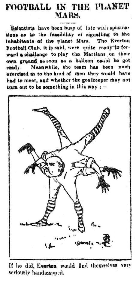 An interesting card and a pleasant afternoon combined towards the comfort of the thousands of football supporters who weekly wend their way to the favourite resort. All the clubs forming the first section of the League were engaged in the struggle for possession of the trophy, and the result of the games (more especially these at Sunderland and Nottingham) were eagerly awaited and discussed on every hand. At Goodison Park Newton Heath, one of the newest acquisitions to the League, were the visitors and a large crowd assembled to witness the encounter. Amongst Evertonian jubilation was great at the return to form of their pets, for had they not gone to “Auld Reekie” during the week and taken 3 to nil out of the formidable” Hearts” the leaders of the Scottish League? Their display in the Northern city was indeed powerful and finished, and this being the first time the Hearts of Midlothians had been defeated on their own ground since April, 1891, made the Everton victory all the more praiseworthy. Would the toffy boys maintain their form today and add a couple of points to their League credit? Was the question agitating the Everton breasts before the commencement of today's game, and the general opinion was in favour of Everton's ascendency. Practically nothing had been done by either team in the League championship competition, but poor as Everton's show had been they nevertheless had 1 point advantage over the Heathens. The Liverpool team had drawn with Notts Forest (2-2), succumbed to Aston Villa (4-1), and drawn with Blackburn Rovers (2-2), scoring 4 goals to 8; whilst Newton Heath had lost to Blackburn Rovers (4-3), drawn with Burnley (1-1), and succumbed to Burnley (4-1), thus scoring 5 goals to 9 obtained by their opponents. A punctual start was made, both teams having a hearty welcome as they entered the field.