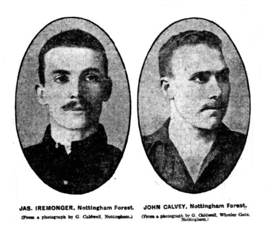 Notts Forest.- Linacre, goal; Iremonger, and White, backs; Henderson, Tummins, and Robinson, half-backs; Spouncer, Capes, Calvey, Forman, and Broughton, forwards.