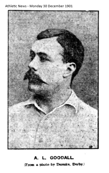 None of those football guides which profess to supply the biographies of players ventures to announce the year of Goodall’s birth. It is proverbially difficult to ascertain the age of a prima donna and a footballer. When asked the question he was bluntly honest enough to refuse the information, which is infinitely preferable to any small deceit. All the same, Archibald Lee Goodall was born at Belfast in the middle of the sixties, and to-day he is a well preserved, active 5ft 7in, which bumps down the scale and also an occasional opponent with 12st 41b. Whatever his years, no one, on looking at Derby's captain, would believe, without his assurance, that he has played in the First Division of the League ever since there was a League, and that has been the victim of more accidents than any man playing the game. He hashad as many broken bones as he has fingers. And yet he is youthful in his enthusiasm and his love of battle, for it has long enough been an open secret that Archie Goodall need not play for mere money. With a very proper pride he relates the fact that he never missed a League fixture for six seasons, and played his part in over 200 consecutive competition matches for Derby County—a wonderful record, which is not unconnected with the fact that Goodall is a life-long teetotaler, and that he is not worshipper at the shrine of “My Lady Nicotine.” Harking back to that dim and distant era, the childhood of Archie Goodall, we find that his parents crossed the dark and stormy water of the Irish as they settled at Kilmarnock. In this Ayrshire town the now famous brothers, John and Archie, first toyed with the football of fortune. “Archie,” with whom our present concern lies, began with Kilmarnock Britannia, for whom he was the centre-forward. But “John migrated to Great Lever, near Bolton, and “ Archie “ followed his example. During a stay of six months or so A. Goodall played with several Lancashire teams, for as an amateur he was a free-lance. Seventeen or 18 years ago there were no professionals, no registrations, no multitudinous bye-laws and rules, and no over legislation for sport. The period of panic, professionalism, privileges, and penalties came afterwards. Hence Goodall was a free agent, and recalls playing for Darwen against Blackburn Olympic, when the match was draw . “ Whenever I see Bob Roberts,” said Archie Goodall, he reminds me of the game. Bob Roberts, Ellis Wood, and I went Bolton to help Darwen, and that was, I think, the first match that Bob Roberts played in England.” But the spirit of home was strong upon him, and Archie Goodall, returning, played with Kilmarnock in the centre. However, in 1886 he was back again in Lancashire, Liverpool Stanley being his principal club. “At that time Mitchell’s St. George’s, of Birmingham, was coming to the front, I was one of a committee of over half dozen who guaranteed a sum for St, George’s to come and play us. I remember that,” added Goodall“ as it was one of Jack Devey’s earlier matches. During the time I with Liverpool Stanley I used to play mid-week matches with most clubs who asked me, including Everton, Stoke, Bolton Wanderers, Preston North End, and Derby County. However, in the first season that the League formed, in 1888-89. I went to Aston Villa, where for the first time I signed professional form. With the Villa I appeared at full back, half-back, and forward. I enjoyed assisting the Villans, as the management were very appreciative.”
