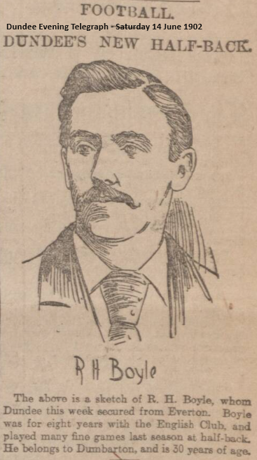 Dick Boyle, a member of the Everton Football Club, was signed by Dundee this forenoon Boyle is what may be termed a veteran player, having been connected with Everton for eight seasons. Previous to that he played for the well-known Dumbarton team