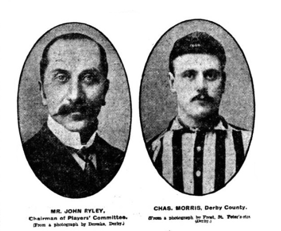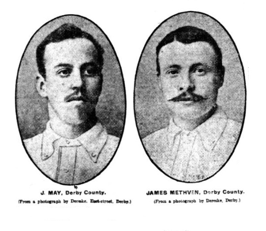 Derby County;- Fryer, goal; Methven and Morris, backs; Hunt, Goodall, and Leckie, half-backs; Shirtcliffe, Bloomer, Middleton, Fulton and Davis, forwards.