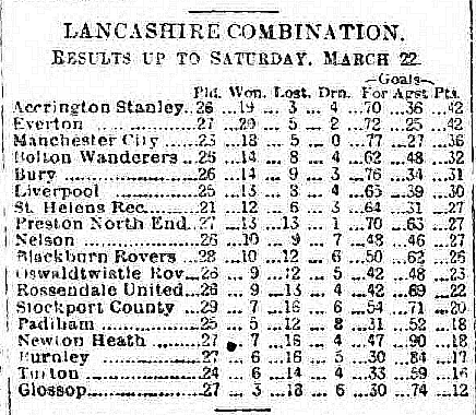 At Stoke, before 7,000 spectators. Stoke were without Halford and Hales. McDonald scored one minute from the start from a splendid pass from Johnson. Roose soon afterwards mulled a fast shot from Young, a most giving away a goal. Ashworth set Lockett going and the latter tricking Wolstenholmes and Balmer, centred well. kitchen cleverly cleared with McDonald upon him. Smart work by Settle and Bell caused Roose to clear on several occasions, benson eventually punting away. After midfield play, Settle judiciously passed out to Bell, who shot grandly, the ball swerving under the bar, where Roose punched it out. Clrke now left the field and Booth immediately equalised with a low, fast shot. Ashworth aggain passed out, this time to Johnson, who rushed straight in and centred. Watson heading over. Everton again worked down, and Roose saved brilliantly from Settle. The latter again shot outside when very well placed. Half-time; Stoke 1, Everton 1