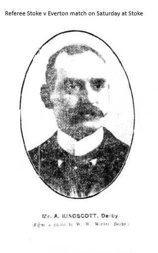 During the first part of the game Stoke appeared to have victory well in hand, but the injury to Clark seemed to unset the side as a whole, and during the latter part of the initial half they went all to pieces. They improved greatly in the second portion of the game, but lacked the grit and determination so necessary to win an uphill game. Roose kept goal well on the whole, and some of his saves in the first half were fine. He was, however, in my judgment, to blame for the second goal, and he would do well to get rid of a bad habit and running out and bouncing the ball. Clark played creditably both before and after his injury, but Benson seemed to be suffering from nervousness and was not a complete success. All three half-backs did good work, and Meredith shaped well in his new position. Ashworth has played better, and was hardly so successful in his passes as usual. The forward play was lacking in vigour and determination, a remark which particularly applies to Watkins, who was very far from energetic. I don't know if he was saving himself for the International game at Wrexham today, but he certainly did not unduly evert himself in Saturday’s game. Johnson and Lockett were often dangerous, but were not fed as frequently as they might have been, for there was far too much close passing between the three inside men. The teams were: Everton; Kitchen; Balmer, and B. Sharp; Wolstenhomle. Booth and Abbott; J. Sharp, Taylor, Young, Settle, and Bell. Stoke;- Roose; Benson, Clark; Meredith, Ashworth, and Bradley; Johnson, Higginson, Watkins, McDonald, and Lockett. Referee; Mr. A. Kingscott, Derby.