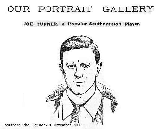 I fancy ! hear someone saying “Joe Turner has appeared in the gallery before;” so he has, and twice to my knowledge, but under different circumstances and in other poses. The above sketch is taken from one of the latest photos taken of the popular outside left by Mr. F. G. O. Stewart, of Southampton, and is, I venture to assert, an excellent likeness for a newspaper portrait printed on an exceedingly rapid machine. There is no need for me to recapitulate facts about Joe's birth-place, age, height, weight, and all those other items which go to make interviews so monotonously alike. Everyone in Southampton who follows the winter game knows all about Joe, and don’t need any reminder. There are thousands who will remember with delight those dear old days on the County Ground when Joe Turner and Wattie Keay used to provide exhibitions of the most superb football equal to these shown by any international wing I have seen of late years. Would that Wattie were as young and agile now as then! Great Scott, what a left wing we should have! I think Joe would be the first to admit that his best football has been played with the Saints ; in fact, I am one of the many who aver that Wattie Keay made him the great player he undoubtedly Is. After being the popular idol for some time Joe forsook his old love and went to Stoke, and thence to Everton, but with neither of these combinations did he show that dash and skill which always characterised his play for the Saints, but, nevertheless, we down South were very glad when we heard that he was returning to the Saintly fold, and hearty indeed was the welcome accorded the wanderer. — Although at first Joe seemed to have lost his old-time “devil” and skill, he is now, since a temporary. “rest,” whilst Harrison took his place, playing in tip-top form, and we have the opinion of the great Charles Fry that Turner is one of the fastest and most dashing wingers in the country. Edgar Chadwick and he have at last fallen into each other's style of play, and bid fair to make one of the most effective left wings in the country. A feature of Joe’s game at present is the smart manner in which he takes the long swinging centres of his namesake on the opposite wing, Arthur Turner to wit, and from these he has scored several goals already. There are thousands of enthusiasts in Hampshire who would like to see Joe “ capped.” I know he has an ambition that way, and that it may be realised this season is the heartfelt -wish of VECTIS.