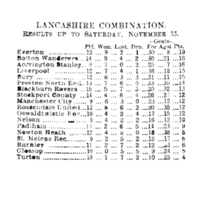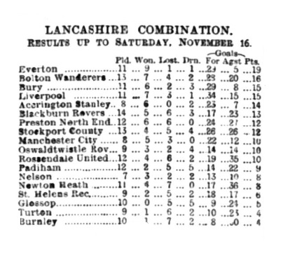 Played at Oswaldtwistle. At the interval the score read;- Oswaldtwistle 3 goals, Everton Combination 1 goal.