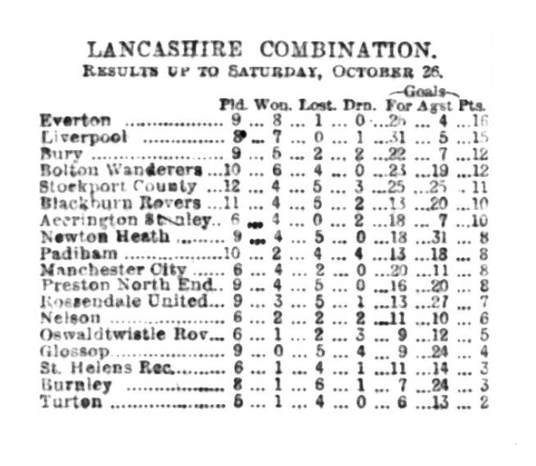Lancashire Combination- Everton 5 goals, Blackburn Rovers nil.