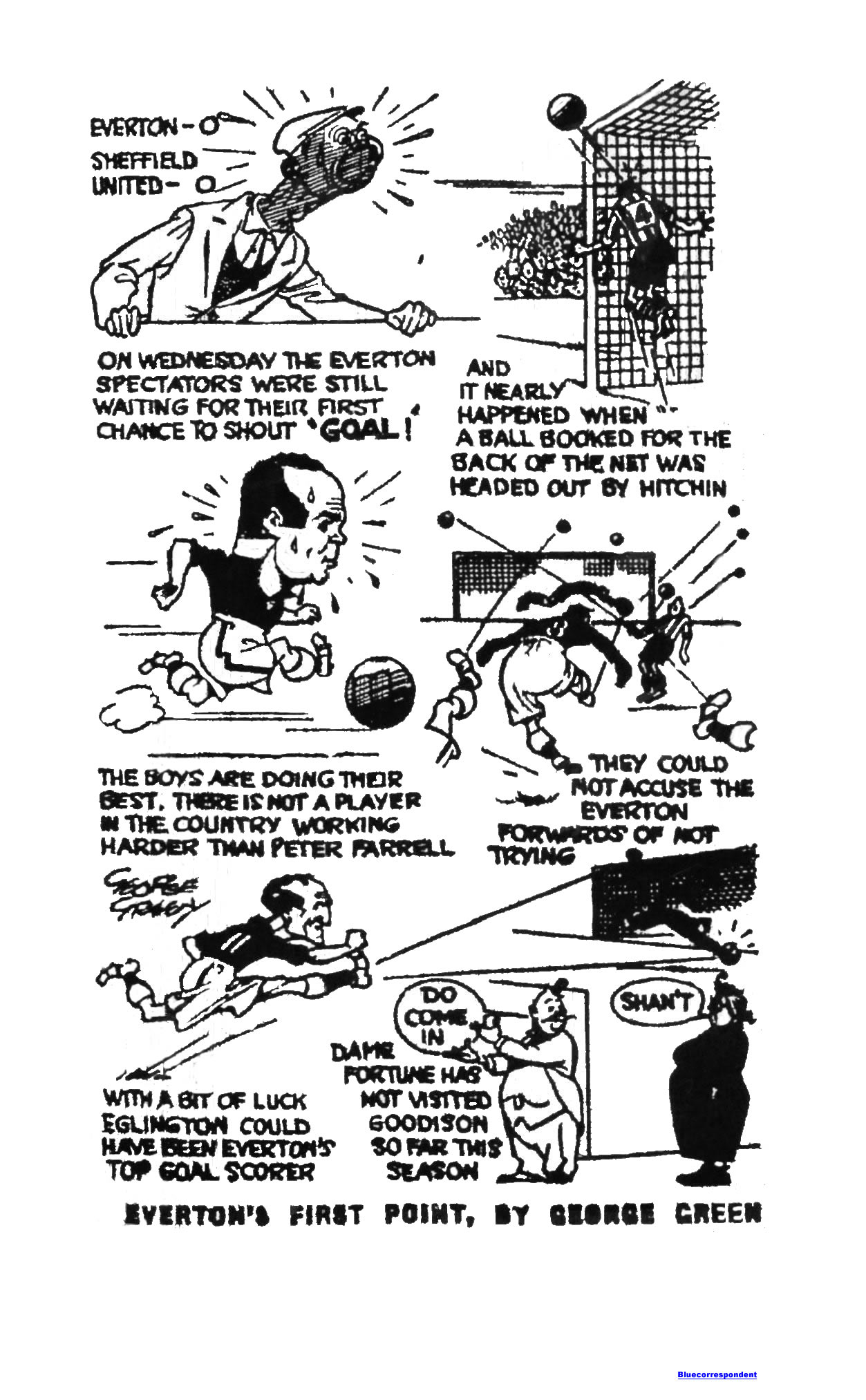 T.M.D from 113 Upper Meadow Street, Belfast, writes; “What has gone wrong with Everton? This has been a debating point among so-called critics for weeks or months now, and is yet no near solution, but to anyone who has known the club in its former days of glory the fault is not hard to find. “For a number of years now Everton have more or less been nothing but a semi-free State eleven. No doubt if this policy were to attract the always large Irish element in Liverpool some people would say it has been most successful. On the other hand some would go by playing standards would say it has been a disastrous failure. You pay your money and take your choice, as they say. “When the Everton of the past wanted a star they went North, South, East or West and usually got him. They were them a power in the land. When did the present Everton team last do anything worthwhile in this line? “Unless the present Board of Management at Goodison Park is taken in hand one could even yet visualize Everton alongside the New Brighton, Tranmere &c, of the Third Division.”