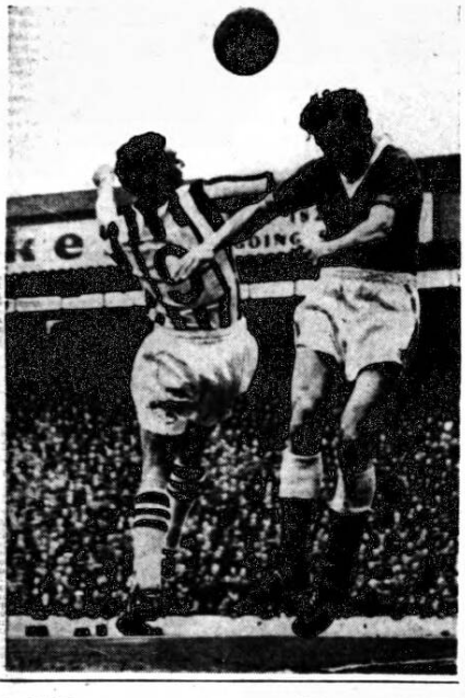 At half-back too, Manager Britton is well served the regulars being another Scot Tommy Docherty and Irish man Frank O’Farrell on the flanks with Joe Dunn in the middle. Dunn and O’Farrell were marked absent last week the one through fish poisoning and the other through a recurrence of the nose-bleeding affiliation which caused him to miss a month’s games last season and landed him in hospital for a time. He returns today, but Dunn is still off and Mattinson continues to deputise.
