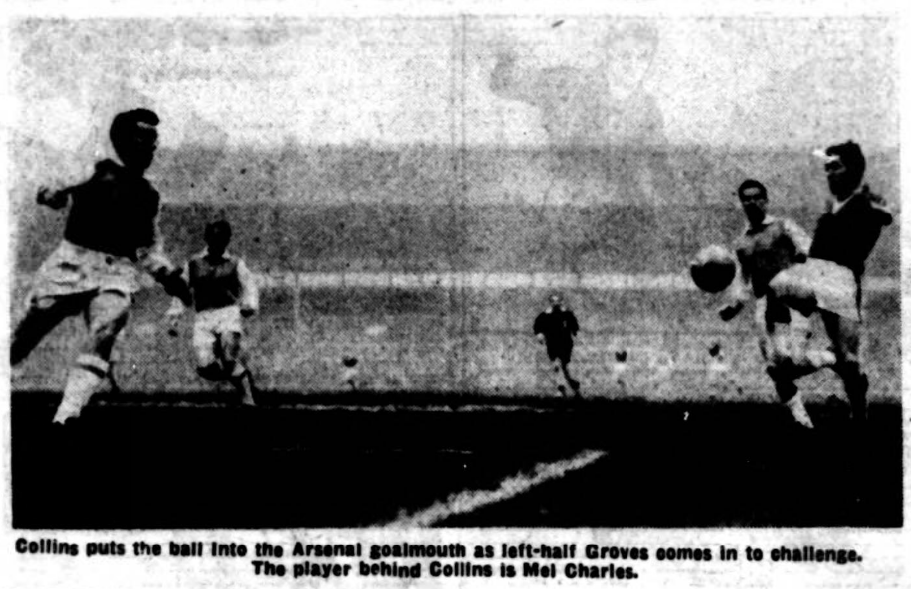 Everton; Dunlop; Parker, Thomson; Gabriel, Labone, Meagan; Temple, Collins, Young, Vernon, Fell. Arsenal; Kelsey; Bacuzzi, McCullough; Barnwell, Charles, Groves; Skirton, Eastham, Strong, Herd, Henderson. Referee; Mr. A.E. Ellis (Halifax).