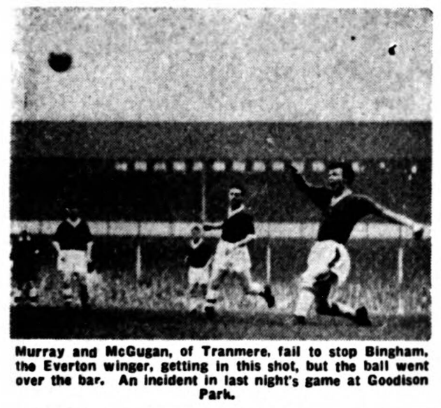 Vernon almost got through from a flicked pass by Young, but he overran the ball and finished up in the crowd. A shot a little earlier instead of trying to dribble around the goalkeeper might have paid dividends here. Bingham put Everton level terms after 81 minutes with a tremendous shot when he ran on to the ball at top speed as Young flicked it across and smashed it with tremendous force into the net to give Jones no chance at all.