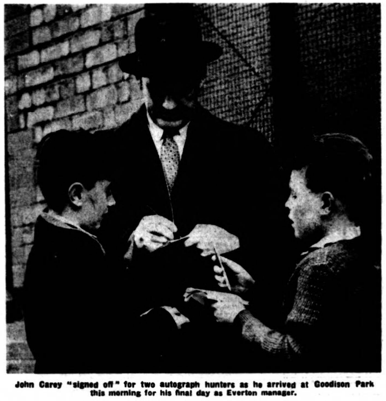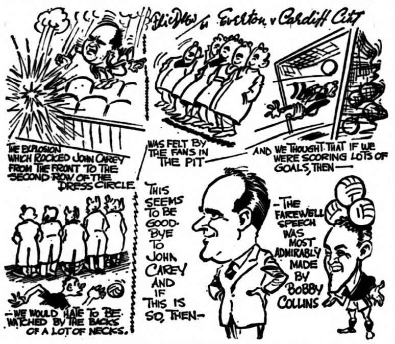 Mr. Catterick could afford to permit himself a smile as he read the following extract from the club programme. “Close on 200 years ago a Frenchman wrote, “If there be any man having the itch to compress a whole book into a page, the whole page into a phrase and that phrase into a word, it is I. The quotation is given because it sums up the feeling of quite a number of people who have become tired of the voluminous comments on recent club, managerial decisions. Every Tom, Dick, and Harry knows what has occurred since our last programme was issued. Almost immediately after the match with Leicester City, Mr. Catterick resigned his position as manager and the resignation was accepted by the Sheffield Wednesday board. Before the week was out Everton announced that the contract of Mr. Johnny Carey as manager had been terminated. Within a matter of days Mr. Catterick was appointed manager of Everton. “We have been unable to compress these facts into one word, but we’ve cut them down to bare bones. And we think they’re enough when you compare the decisions to Russia’s staggering feat of speeding a man round the earth in less than 90 minutes and bringing him down to terra firma again. It’s time there was a senses of proportion.”