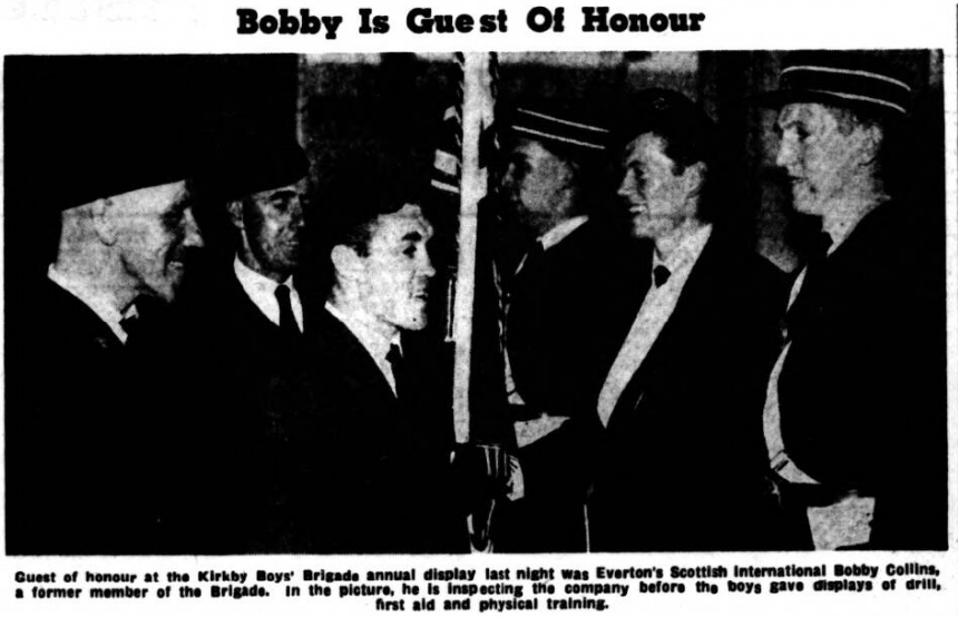 If there is a surprise in the party of Everton players nominated to make the trip to America to take part in the soccer tournament in New York it is probably that of Tom Jones, the club captain, who has played in only two League games since the turn of the season. As well as being a tribute to the devoted service given by this fine player and great sportsman, Jones’s inclusion could pay dividends for with his ability to turn his hand to centre half or full back, he could be a useful man to have with the club. Another surprise, possibly, is the inclusion of Mickey Lill, who has not figured in the first team since his operation, but I am told he has proved his fitness with the reserves. The touring party will be Dunlop; Parker, Thomson, Gabriel, Labone, Meagan, Bingham, Collins, Young, Vernon, Fell, Lill, B. Harris, F. Wignall, Temple, Jones.