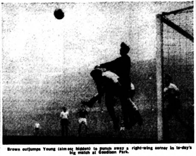 Amid all the excitement of the signing of Alex (Sandy-haired) Young from Hearts few have had time to recollect that this Is the second top-line Scottish International centre-forward of precisely the same Christian and surname who has been on Everton's books (writes Leslie Edwards). The first was the famous Alexander (Sandy) Young who scored the only goal of the game for Everton, at Crystal Palace, in the Cup final of 1906 against Newcastle United. He played for Scotland in 1903 against England and in 1907 against Wales. His Cup exploit led to famous song. “Heigh-ho, Sandy scored the goal, Sandy scored the goal, Sandy scored the goal." Alexander Young, the second, who has yet to make his debut for Everton has played for Scotland several times, the first occasion being against England last season. Sandy Young, the first, immigrated to Australia after leaving Goodison Park and was Involved, there, in a case of manslaughter.