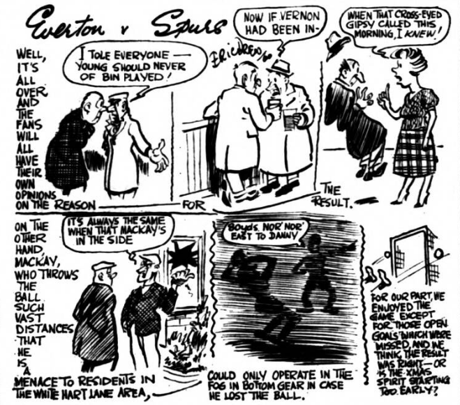 His mind has obviously been made up for quite a time that Herd is the player who has in abundance just what Manchester United lack. Mr. Busby has dug his teeth right into this bargain and I don’t believe he will let go until Herd lands at Old Trafford, where the need for him is so much greater now, following the injury to Dennis Violett. I was glad to see George Thomson come into his own before the end of the Arsenal game. For any player a debut is an ordeal. He is trying so desperately hard to please, that performance sometimes suffers. It was even more trying for Thomson because this was not merely a debut, but also an introduction to a different class of soccer and I am one of those who believes that an Englishman going into Scotland would find the game far easier to play than anybody taking the reverse route. Just as I do not believe we have seen anything like the best of Thomson, I am equally certain that Everton have only touched their best in fleeting moments. They have the framework now for a really brilliant side and once we drop into the rhythm just as Tottenham have done this season, I would like to believe that Everton followers are destined for entertainment of the highest class. The mason confessed to me that he was shaky at first; but felt much better as the game progressed. Well that is very natural and I was able to comfort him somewhat by telling him that not every week will he meet a right winger as fast or clever as Danny Clapton. The Scot’s style of play is very much that of Everton and I can foresee the time when George will be every bit as effective as Alex Parker, and that is tribute indeed. Everton players are just as impatient as their supporters to see Alex Young in action. We have seen him in training but with his speed and experience in the middle we are all looking forward to great deeds ahead, I don’t think we will be disappointed even if the forward line does not click immediately. Future success I believe is assured.