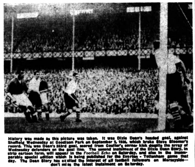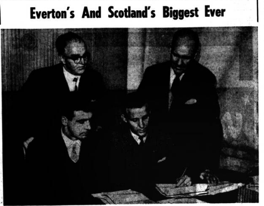 MR. BILL PRITCHARD, of Alaunia, Bushell Road, Neston, writes “I must comment on the views of your correspondent, Mr. D. Jones, regarding the signing of Alex Young.” Well do I remember sharing a billet in Tunis with the late Alex Jackson, then the Eighth Army Sports Officer, whom many will recollect as ranking as one of the best wingers ever. “Our conversation naturally turned to football and on so many points we agreed, but when I voiced the opinion that Bill Dean was the greatest centre forward I had ever seen, Alex voted Hughie Gallacher even better. " I argued somewhat on the lines of Mr. Jones and of Dean's advantage at taking centres from the wings, he being 5ft. 10ins, and Gallacher in the region of 5ft 6 ½ ins. But Alex pointed out firmly that the whole art of football was positional sense and a true ball player would always come out on top. He quoted the famous Scottish forward line of Blue Devils—Jackson, Dunn, Gallacher, James and Morton all wee except Alex himself. “Answering Mr. Jones further. May I say that I am content to back John Carey's judgment? He has bought big of his own choice and results have proved his sound football acumen. Thus, I see no reason to doubt that he has failed to pick the right man in Young, in whom he has been very interested for some time. Obviously Everton in their present mood have the pick of all players and so must consider Young the centre-forward for their line. "To play between two of the caliber of Collins and Vernon requires skill and brains and finally let us remember that Mr. Carey is no doubt implementing again his promise of entertainment by paying £XX,000 for Scotland's centre."