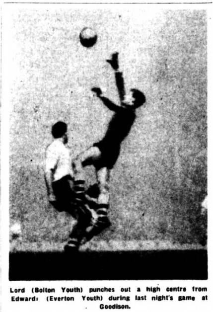 A well drilled defence enabled Everton to save a point from the return junior derby game at Anfield yesterday. During their almost continuous bombardment of the Everton goal in the last half hour Liverpool had innumerable shots charged down, and when they did find a loop-hole Mailey still kept them out with some grand saves. The Everton goalkeeper however had no chance with Carlin’s equaliser twelve minutes from the finish. Before Edwards gave Everton a shock lead in the 47th minute the 4,000 spectators had endured a drab and listless display, if the Everton forwards had been more direct near goal Liverpool might have regretted some casualness in defence early on but only the hard working Tyrer was inclined to try a shot. Centre forward Webber was given little scope by Nicholson who, with Parry was the mainstay of Liverpool’s defence. Besides Mailey, centre half Jones was the chief stumbling block to the Liverpool forwards who expect for Carlin and Callaghan never produced their best form.