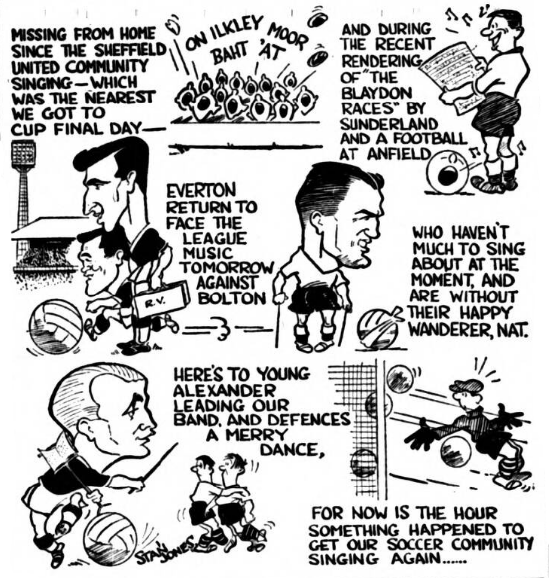 You may have seen an item in the Echo recently relating to an 11-years-old Evertonian, Walter Redpath, of 124 Lowerhouse Lane, West Derby, who has had to go into hospital for an operation on his crippled leg. His twin brother, James, is a Liverpool fan. This cutting was shown to me by a neighbor of mine who took the trouble to come to my home, and I have also received a letter from a “Loyal Evertonian” in Prescot. They both ask me to get the team’s autographs for Walter, and I certainly shall. If you read this Walter they are on their way. We hurry up and get fit. We want to hear you at Goodison again.