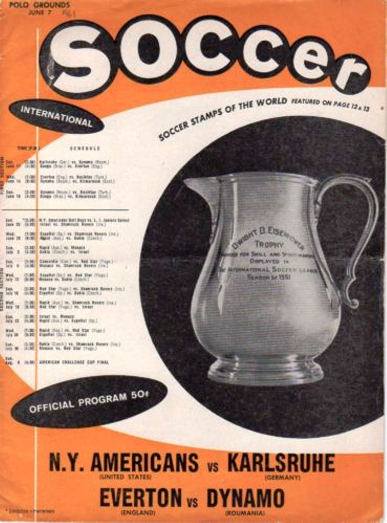 Everton beat Karlsruhe (West German) 5-2 in New York yesterday to keep their unbeaten record in the American International Soccer League. Everton the only undefeated side in the League, were a goal up in four minutes and never looked back. Young (4th and 17th minutes), Wignall (42nd), Collins (49th) and Bingham (80th) were Everton’s scorers. Left-winger Nedoschil and inside-left Wischnowsky (59th) replied for Karlsruhe. A 14,729 crowd watched the game with the temperatures in the 80’s but a breeze offset the heat. Everton’s forwards moved slickly and looked much more dangerous than Karlsruhe, whose finishing was often weak. Karlsruhe made an all-out bid in the closing minutes to cut Everton’s lead. But they could make little impression.
