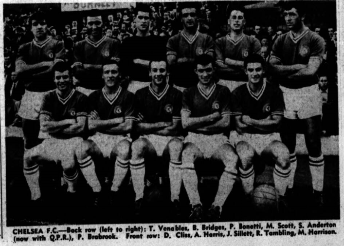 Blanchflower took the free kick, pushing the ball a few inches to one side for Smith to hammer the ball against the underside of the crossbar, the ball bouncing down and out. Immediately afterwards Gabriel and Smith were involved in an incident. This was the signal for a series of rough tackles and the game slipped away, with a number of the crowd leaving long before the end. This was not championship form by either side, although Tottenham full deserved their win. Tottenham Hotspur; Brown; Baker, Henry; Blanchflower, Norman, Marchi; Jones, White, Smith, Greaves, Dyson. Everton; West; Parker, Meagan; Gabriel, Labone, Harris; Bingham, Stevens, Young, Vernon, Temple. Referee; Mr. C.W King (Mons) Attendance 47,430.