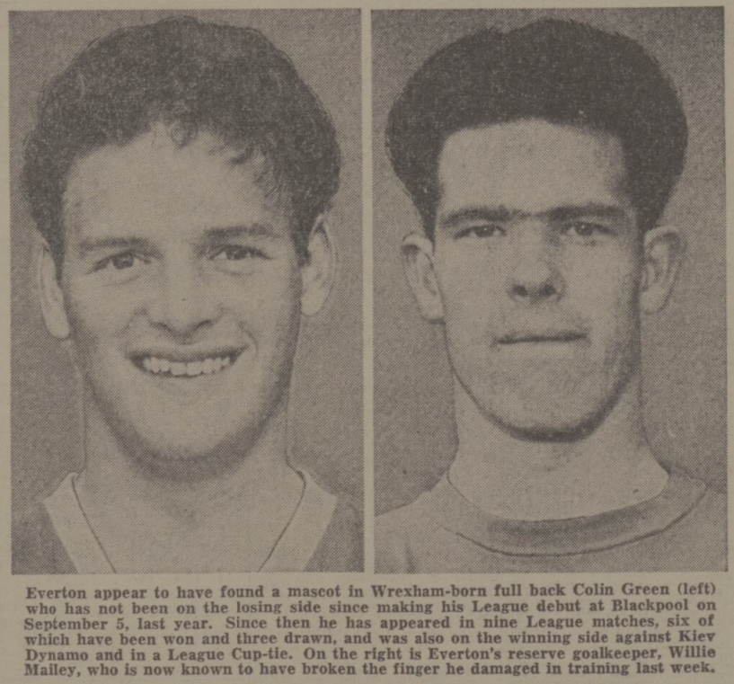 Bobby Collins and Alex Parker Everton players whose soundness had been in doubt all week, both passed fitness tests at Goodison Park today. Parker replaces Wrexham full back Colin Green for the match at West Ham tomorrow. Collins is among six players from whom the attack will be chosen. Manager Harry Catterick said of Parker and Collins return; “That is the best news I have had since joining the club.” It is only the second time this season I have been able to choose my side from a full compliment. The speed of Parker’s recovery surprised me. Everton; Dunlop; Parker, Thomson; Gabriel, Labone, Harris; (from) Bingham, Young, Collins, Wignall, Vernon, Fell.