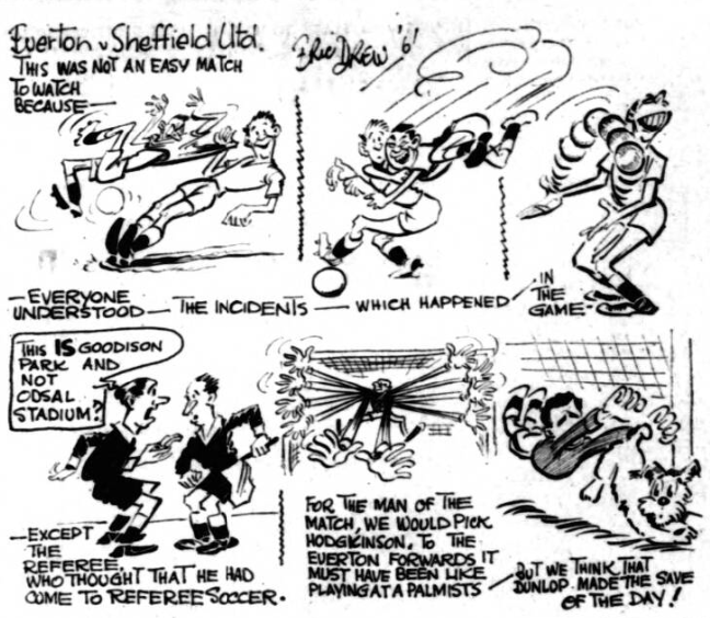 Writing from 8 Renfrew Street, Kensington, and J. Loftus says: “Your remarks about Everton's so-called dirty play were uncalled for. While admitting that Everton's defence did get away with a few fouls, other teams also escape the referee’s eye in this respect.'' Mr. Loftus, I did not suggest Everton were dirty, I merely said they pushed and pulled opponents in a most un-Everton way.