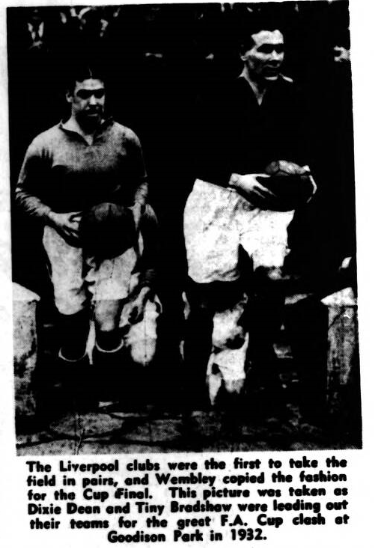 Arthur Westcombe, doing belated spring cleaning, came across a 1941 programme dealing with the wartime meeting of Liverpool and Everton at Anfield. The band of the Irish Guard (60 performers) was an added attraction. In those days crowds were limited to a few thousands because of the risk of air raids. George Kay’s bulletin on this single-sheet programme talked of practically all the club’s professional joining H.M. Forces at or before the war’s outbreak. The Liverpool manager of those days used to rake up his team from the countryside 50 and 60 miles away from Liverpool. They included C.S.M-Instructor M. Busby, C.S.M Dick Temp Sergeants Riley, bush, McInnes, Balmer, H. Eastham, Taylor, &tc, 7c, and Flight Sergeant Nieuwenhuys, Able Seaman (and what an able-seaman he would be!) Jim Harley and Gunner Bob Paisley. As far as I know Second Lieutenant Len Carney who played so well for the club in war-time is still school mastering somewhere is these parts. The joke about Liverpool and their many T.A players when the war started is that they travelled in style through the Woodhead tunnel near Sheffield, returning from their first game of the season at Sheffield United and a few days later were set to guard that same stretch of the line, eating Army rations where they had a few hours before been dining off the fat of the restaurant car. As a matter of interest the teams for that far-off match in October, 1941, were;- Liverpool; Hobson; Lambert, Ramsden; Taylor, Bush, Kaye; Nieuwenhuys, Ainsley (Leeds United), Done, Dorsett (Wolves), Liddell. Everton; Burnett; Cook, Greenhalgh; Bentham, Keen, Watson; Anderson, Jones (H), or Owen, Lawton, Stevenson, Lyon.