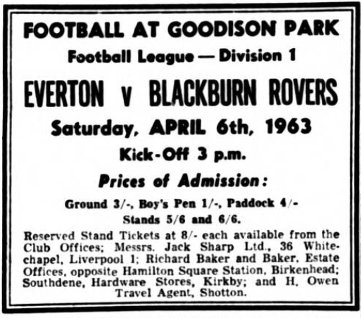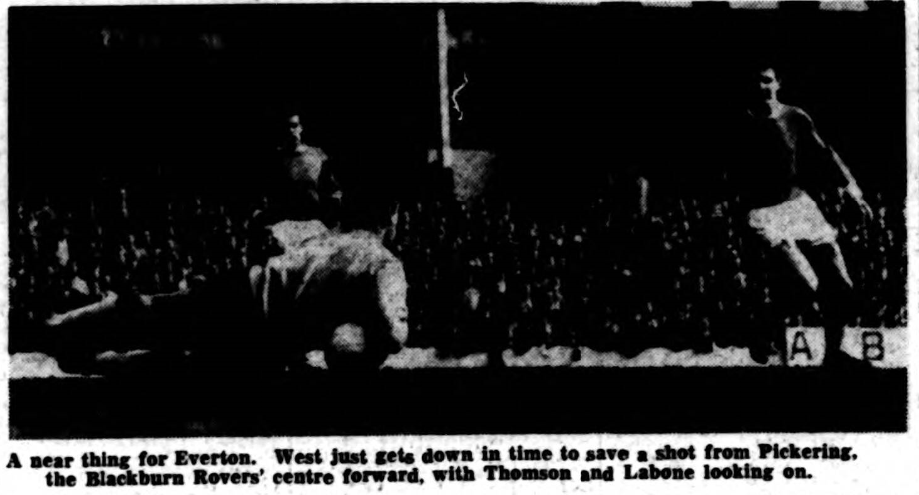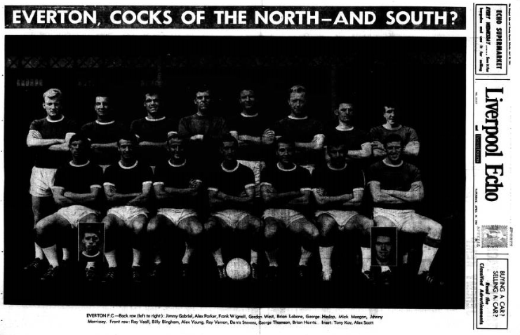 Everton have chosen the side which won at Villa in midweek for the important game against Blackburn Rovers at Goodison Park tomorrow. Scott who has had throat trouble is all right again; Thomson maintains his place at left back as deputy for the still-inured Meagan. Blackburn bring in Ferguson at outside right. He takes the place of Douglas, who is playing for England against Scotland at Wembley. This is the only change. Ferguson was the regular outside right – Douglas playing inside left- until he lost his place after a 3-1 defeat against Arsenal a fortnight ago. He is a former Accrington Stanley forward. Everton; West; Parker, Thomson; Gabriel, Labone, Kay; Scott, Stevens, Young, Vernon, Morrissey. Blackburn; Else; Bray, Newton; Clayton, Woods, England; Ferguson, McEvoy, Pickering, Byrom, Harrison.