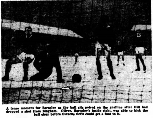 One of the secrets of our success was in pre-match “spying” missions carried out by members of the Everton staff which enabled us to prepare tactics to meet many of the situations which presented themselves during the game- including the offside trap. In fact, two of our goals –those scored by Brian Harris and Roy Vernon- came from counter measures to the Barnsley offside plain. When Brian came up the middle of the field, the Barnsley defence positioned itself in readiness to move forward just before they thought he would part with the ball but as it happened Roy Vernon and myself were able to draw out respective “watchers” to the side, thus leaving Brian with a tap in which to shoot at goal. One of the drawbacks of the offside game, is that it often leaves the defence standing in line and it was this fact that helped when Roy nipped in between three defenders to score out third goal which incidentally, if considered a very good one. My congratulations to Barnsley however, for they did exceptionally well especially when one remembers there were four teenagers in their side.