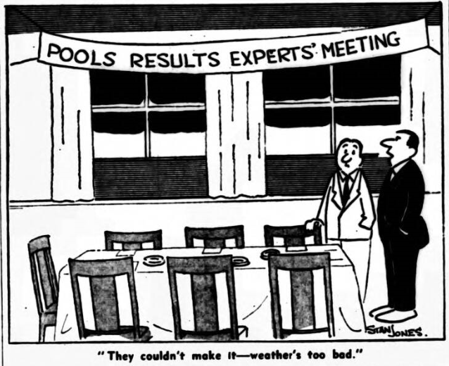 For the second week running there will be no major football pools. The Pools Promoters Association said this afternoon that all pools on matches tomorrow had been cancelled. This applied to Littlewoods Vernons-Copes, Empire Zetters and Soccer. All stake monies would be credited to client accounts. Everton’s game at Barnsley and Liverpool at Wrexham were both postponed today.