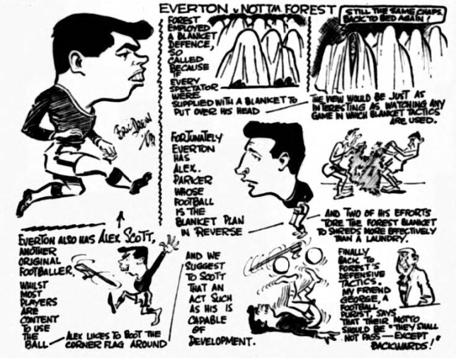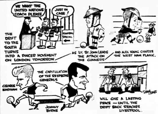 “I have received an account of the West Ham-Everton game from a friend, a Merseyside exile, who follows both our clubs on their London trips. What he says is far too blistering to be published in your column. My shame at his opinion of Everton’s performance defies description. Mr. Moores put his finger on the spot when he said he admired Spur’s poise. Are there, indeed, too many hot-heads in the Everton team?” – Gerard Jones, 21 Earlston Road, Wallasey.