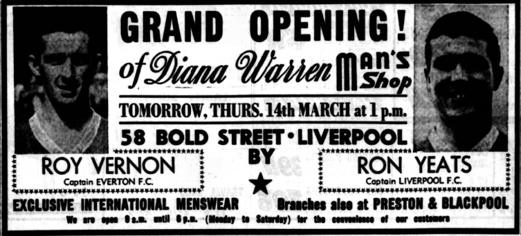 “My friends and I (red-hot Liverpudlians) were disappointed the other night when we went to a charity show in Huyton, in which Liverpool and Everton footballers were appearing. We especially wanted to see our team, of course, but not one of the players turned up. Six Everton players arrived. Let’s see some of the Liverpool players more often- even if its only two.- Miss S. Frodsham, 67 Sutcliffe Street, Liverpool 6.