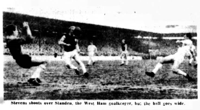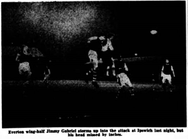 Everton’s forward had been out of the game for long spells but in the last ten minutes they suddenly opened out to play their finest football of the match in which they coupled brilliant constructive work with powerful finishing. Kerr scored for Kilmarnock after excellent work by Black, putting the ball in the net from close range and then Everton suddenly turned on the pressure to score two late goals which gave the score line rather a false impression an did not indicate just how well Kilmarnock had played. Nine minutes from the end Scott scored a brilliant taken goal after corner with the ball bobbing about and Stevens finally crossing it to the winger who smashed it into the net at great speed! Four minutes later Parker put over a long cross and Young went up brilliantly with McLaughlan to head it gently into the net. Everton; West; Parker, Thomson; Gabriel, Labone, Kay; Scott, Stevens, Young, Vernon, Temple. Kilmarnock;- McLaughlan; King, Watson; Murray, McGrory, Beattie; Brown, Mason, Kerr, Sneddon, Black. Referee; Mr. A. Edge (Liverpool).