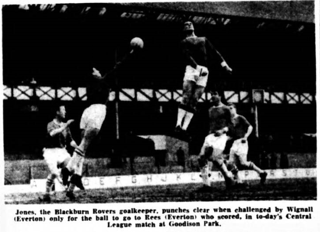 A goal ten minutes from time gave Everton a point which was scarcely deserved in this Central League match at Blackpool. It was an indifferent display by the Goodison Park men against an immature Blackpool team. For a long time the Everton defence was so wide open that only the tall and resolute Heslop have adequate protection to goalkeeper Dunlop. Both the Blackpool goals were scored by inside left Fisher from unmarked positions. Later the visiting defence steadied and ultimately full backs Harcombe and Parnell almost completely subdued Blackpool’s two wing forwards, Hill, the ex-Under 23 international and Oates. The Everton attempts were all based on the double centre forward plan. In it Wignall seldom escaped centre half James, but Rees was a fast progressive forward always seeking shooting positions. He scored both Everton’s goals, the first from 25 yards out.