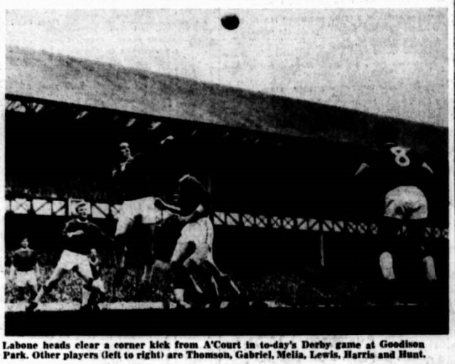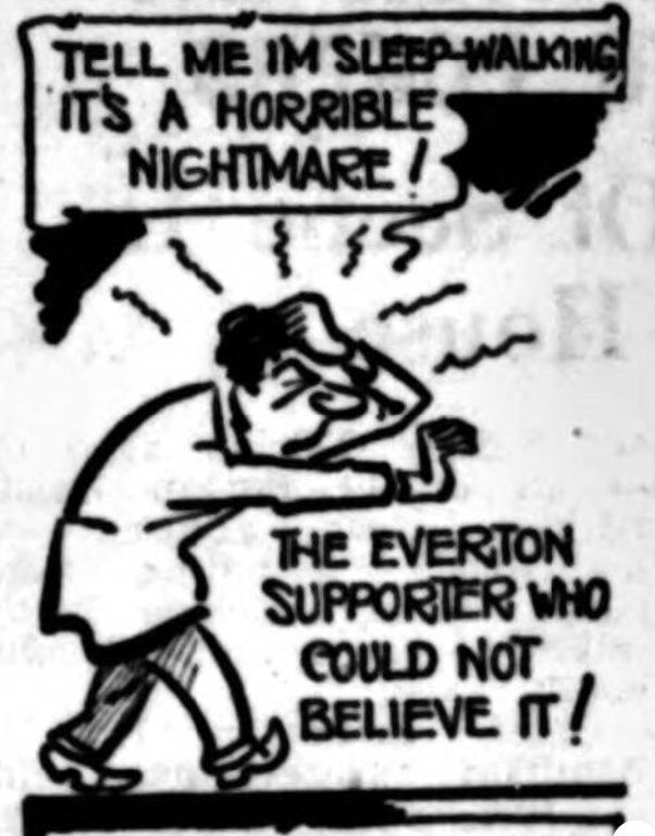 More aftermath (some might say aftermyth) of the "derby" game. The most novel suggestion, and it is sensible, comes from James Davey, 8 Warden Street, 4, who argues;" When Vernon ran from behind Furnell he was in an offside position; hence the free kick. It is so simple." This is one the referee and linesman never thought of! One man who saw only 30 minutes play, M.S. Marlowe, 17 Nelson Street, New Brighton, explains why; "I protest to Everton at the overcrowding, I bought a ground ticket (Gwlady's Street) and was kicked, shoved and generally knocked about.