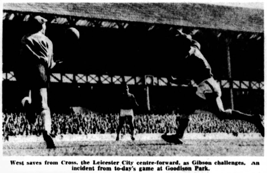 Next Wednesday Leyton Orient who seem to be finding early days in Division One just as trying as Liverpool are,come to Goodison, and on Saturday the visitors are Leicester City. Leicester will probably have Dave Gibson, the former Hibernian player, in their side, and for those who like to watch what has come to be regarded as the typical Scottish inside forward style of play, there could be a treat in store. Dave may lack inches and a little weight, but when it comes to displaying the arts and crafts of football he has few masters. For me, the game should produce another tussle with centre half Ian King, who,as I told you last year. Will a colleague of mine in Edinburgh school and junior football.