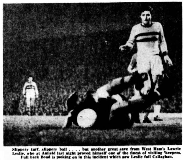 "Was Morrissey's shot over the line when it was headed out?" I am certain this was another blunder by the referee. The ball did not cross the line at all, much less the whole of the ball. Just before the ball went to Vernon it was handled by Stevens in the Liverpool penalty area, but no free-kick was given." E. Spedding, 9 Ranworth Close, Liverpool 11.